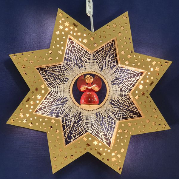 88100 Holz-Leuchtstern 5-Zack mit Klöppelbrief Stern 851014