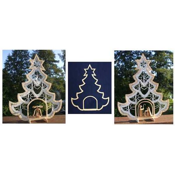 Der Holzrahmen "Weihnachtsbaum mit Innenraum" eignet sich zum Einhängen Ihrer Klöppelspitze. Der Weihnachtsbaum selbst geklöppelt und in den Holzrahmen montiert ist eine wunderschöne Weihnachtsdekoration.