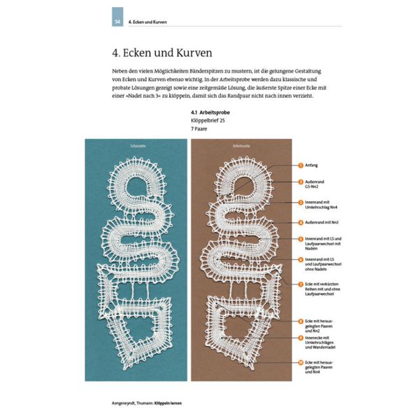 Klöppelkurs in 12 Lektionen mit über 600 Abbildungen, Fotos, Fadenzeichnungen und Illustrationen..