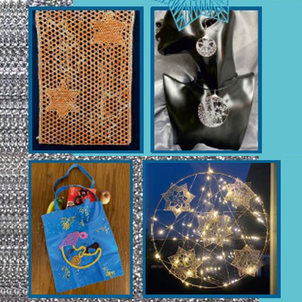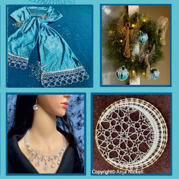 In der Klöppeltechnik betrachten wir diesmal die "Sächsische Valencienne", natürlich wieder aufe eine andere Art als "die Übliche". Wir haben zwei verschiedene Bandspitzen und einen außergewöhnlichen Schal entworfen, an dem das Gerlernte ausfühlich geübt werden kann.