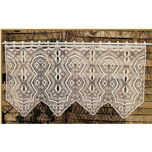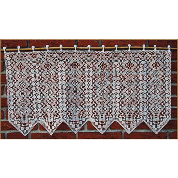 Die Größe der Gardinen kann durch die Anzahl der Rapporte und die Stärke des gewählten Leinen-Garns bestimmt werden. So können die Gardinen jeder Fenstergröße angepasst werden. Die Gardinen werden in einem Weg geklöppelt.